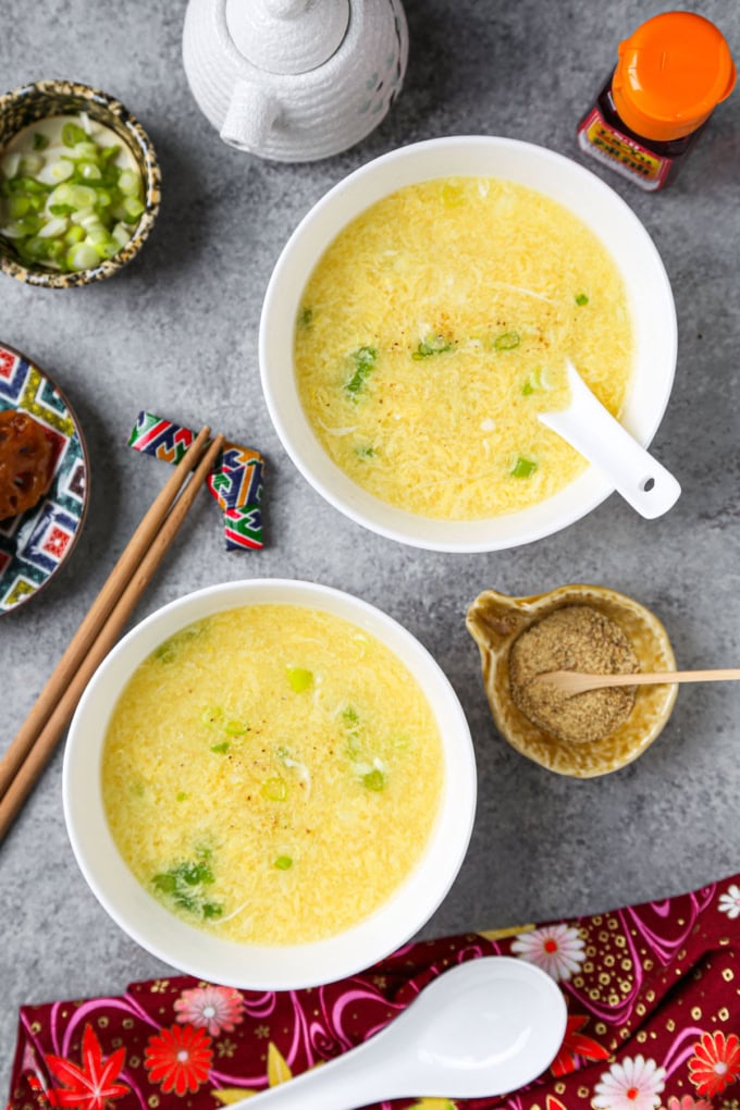 This recipe is the old school egg drop soup found in every Chinese restaurant across the world. It’s delicate, nutty, a little salty and eggy.